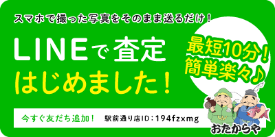 出張査定や宅配買取のご依頼、その他ご相談、お気軽にお問い合わせください お電話でのお問い合わせはこちらまで 0770-36-1836 【営業時間】10:00~18:30 (日曜18:00迄) 水曜定休日 LINEで査定・お問い合わせ 来店予約のお問い合わせや、出張査定の依頼などお気軽にメッセージをお送りください。 メールでのお問い合わせはこちら メールでのお問い合わせの場合、内容等によっては返信までにお時間を頂く場合がございます。急を要するお問い合わせにつきましては、お電話にてご連絡下さい。 必須お名前 任意電話番号 任意ご住所 必須メールアドレス 必須件名 必須お問い合わせ内容 ※確認画面は表示されません。上記の内容にて送信します。 ※個人情報、お問合せ内容の取扱いについて、弊社担当者以外が観覧することはございません。 Δ